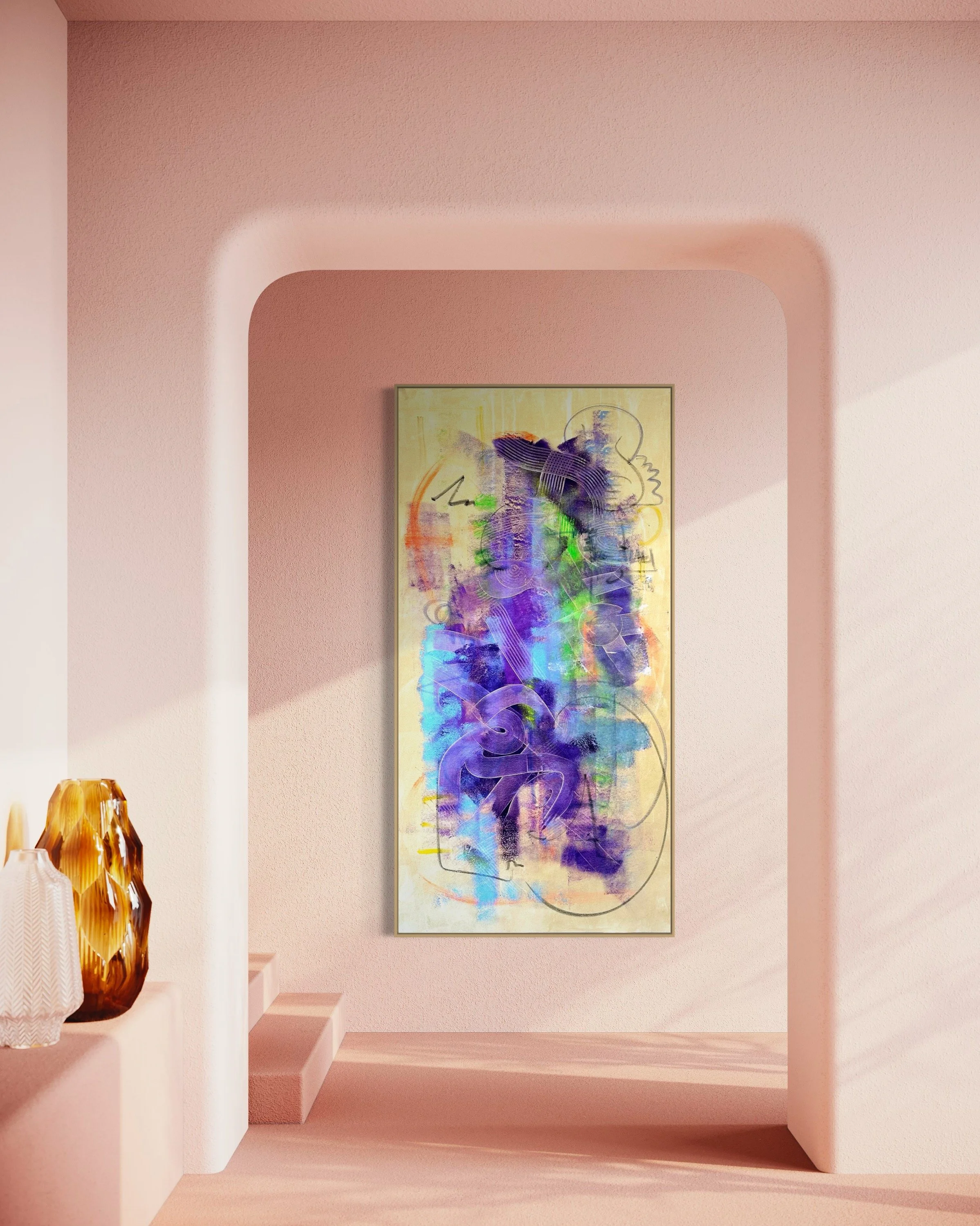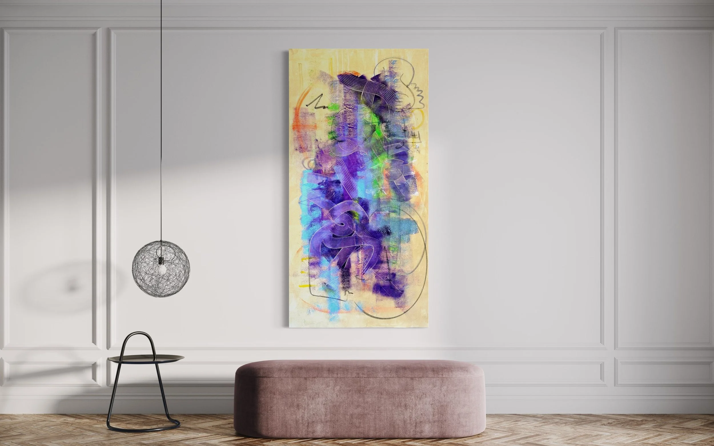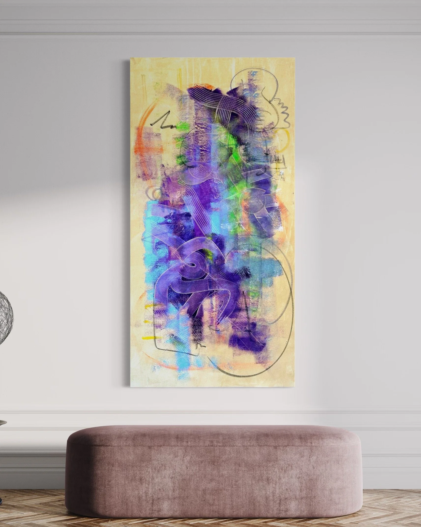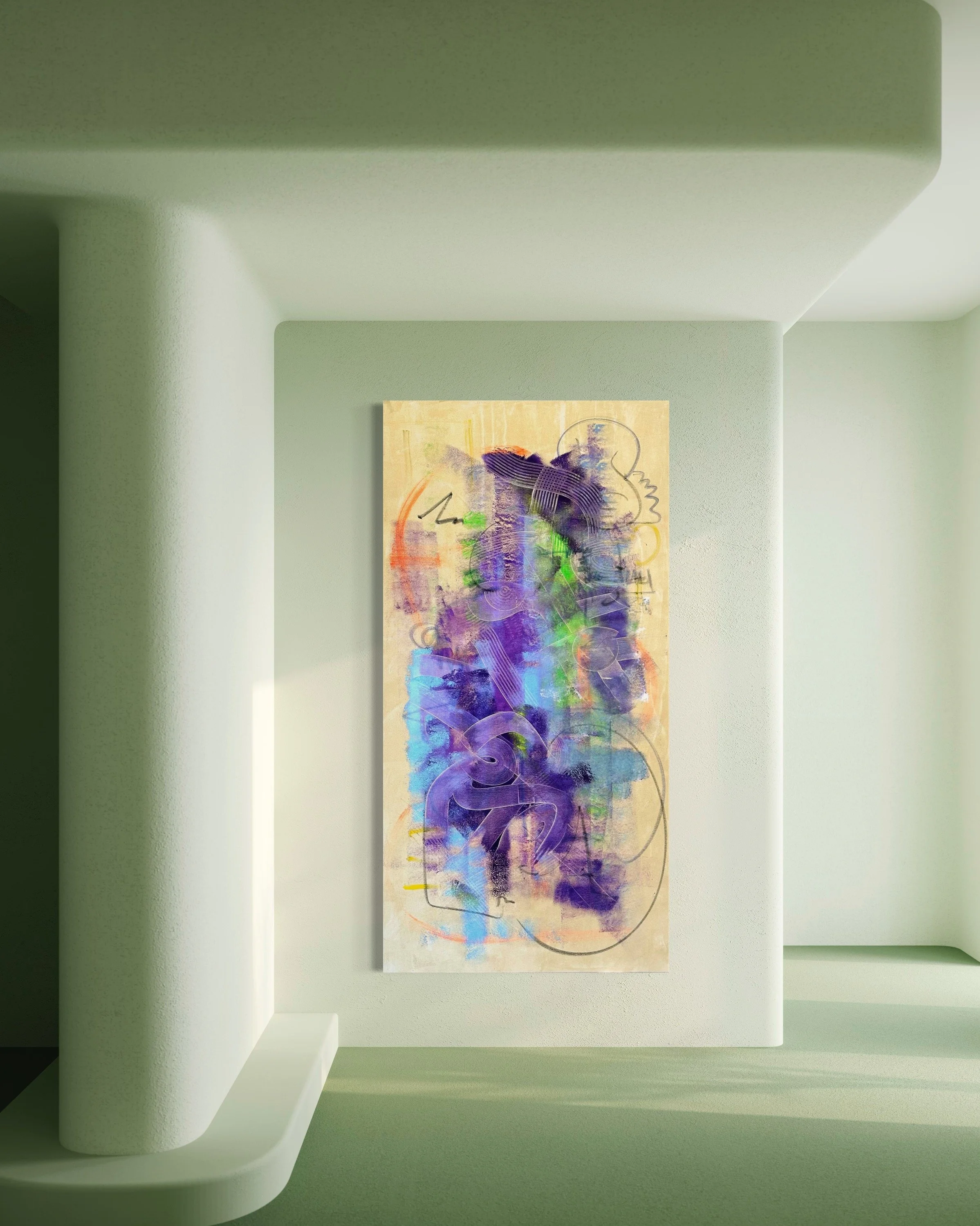 Acrylic, oil stick on canvas